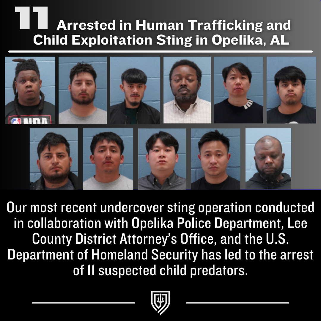 In the first three months of 2025, Covenant Rescue Group partnered with law enforcement to combat child exploitation and human trafficking across Alabama. These efforts led to 26 arrests, with charges including human trafficking, child solicitation, and traveling to meet a minor for illegal activities. Working alongside agencies in Huntsville, Opelika, and Morgan County, we remain steadfast in our mission to protect the vulnerable and bring offenders to justice.